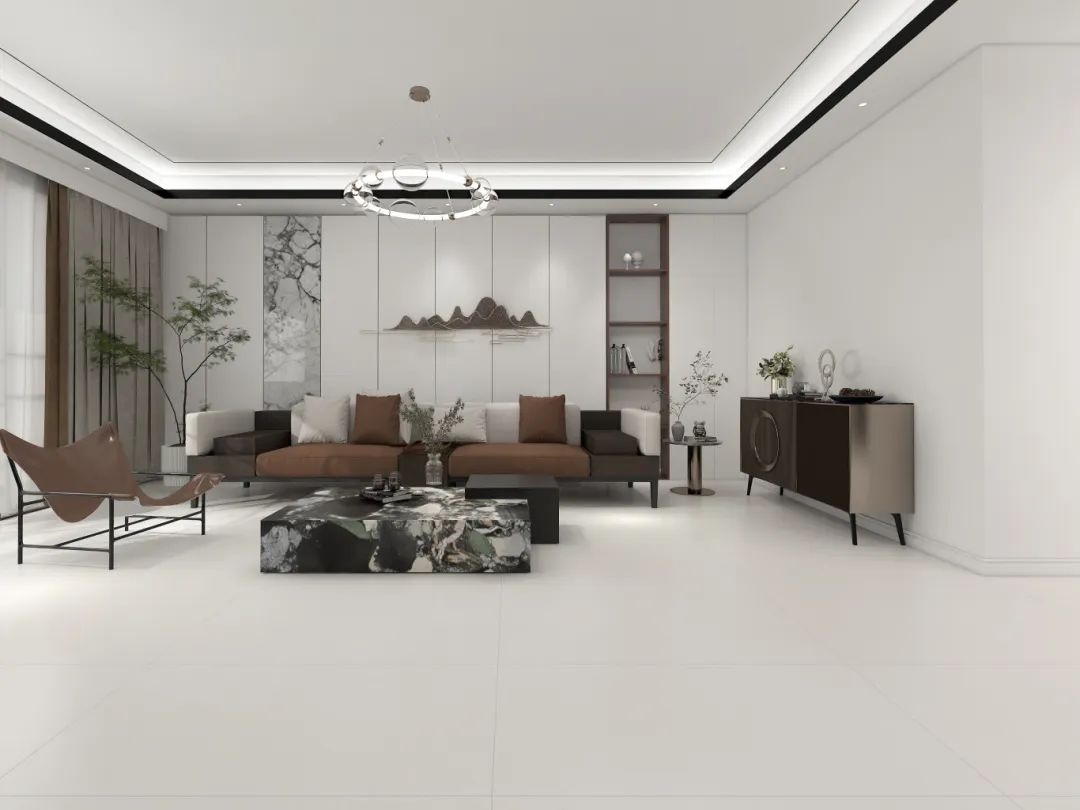 灰白色的高級感,舍棄復雜的顏色,將其綿滑細膩的觸感呈現(xiàn)在磚面,多一份溫潤柔和,營造出別致的家居空間。